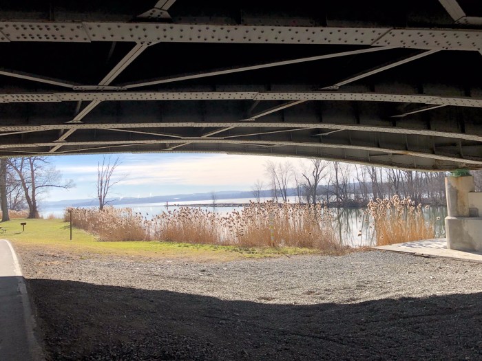 In addition to the quaint one-lane bridge that travels over the entrance to Willow Bay and the creek width of Onondaga Lake Park, much busier roads wind their way past as well.