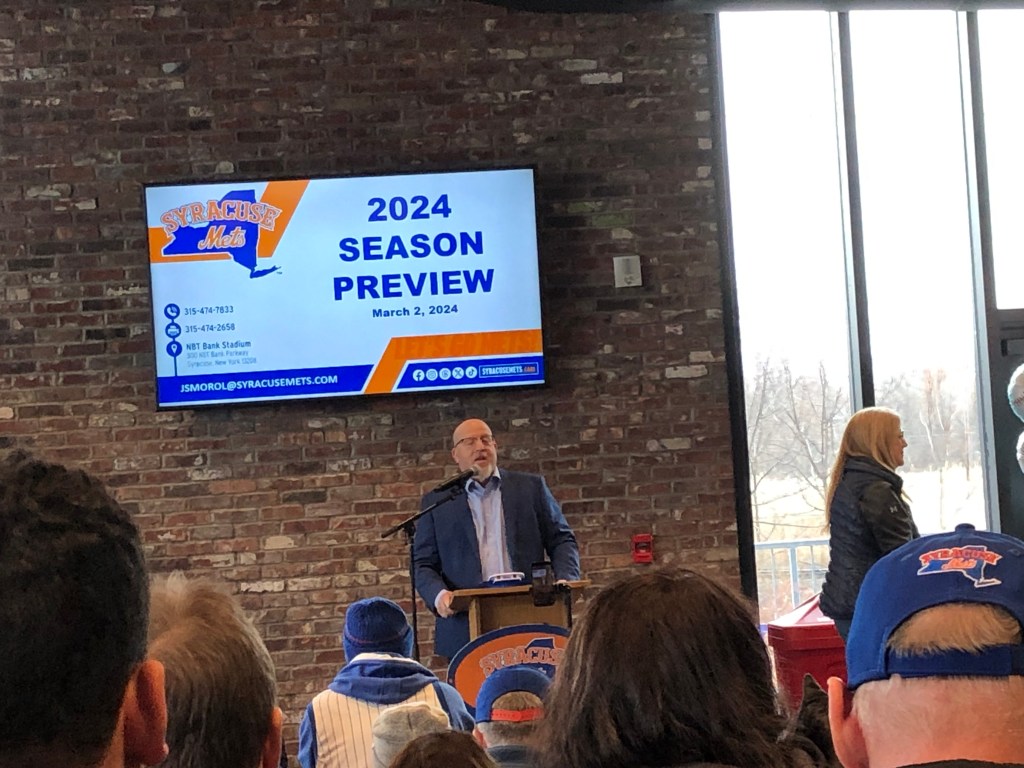 Syracuse Mets General Manager Jason Smorol raised the enthusiasm level for the upcoming 2024 season by detailing what’s to come at NBT Bank Stadium through September.