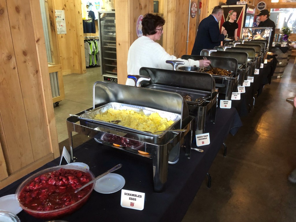 Why cook when you can make reservations, suggested I a week out from the holiday. She was all in. The pretty Brewhouse up on a hill that we’d enjoyed for Karen’s company picnic last summer had slots open at 10:30 a.m. I signed up online.