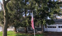 Proud block. Two houses down from yesterday’s flag and pole, there still was no breeze as I walked past another flag.