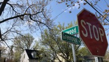 Mental landmark. Fittingly enough, my halfway point on this neighborhood walk route falls at a well-marked cross street. Onward I go after the quick iPhone photo capture.