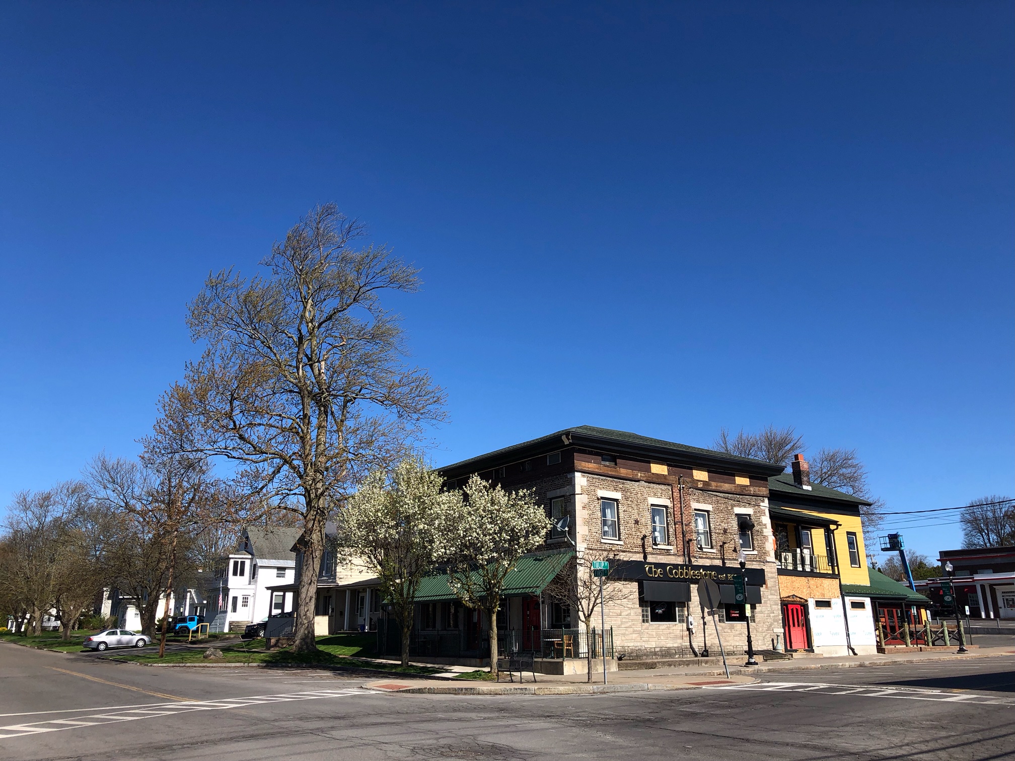 A visit to the Village of Liverpool corner for a late April stroll allows the realization that the tree smack dab in the middle of Tulip and First was always ready to make me smile at this time of year while I worked half-a-block up at the library.