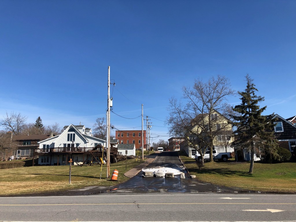 The snow plow pile persisted.