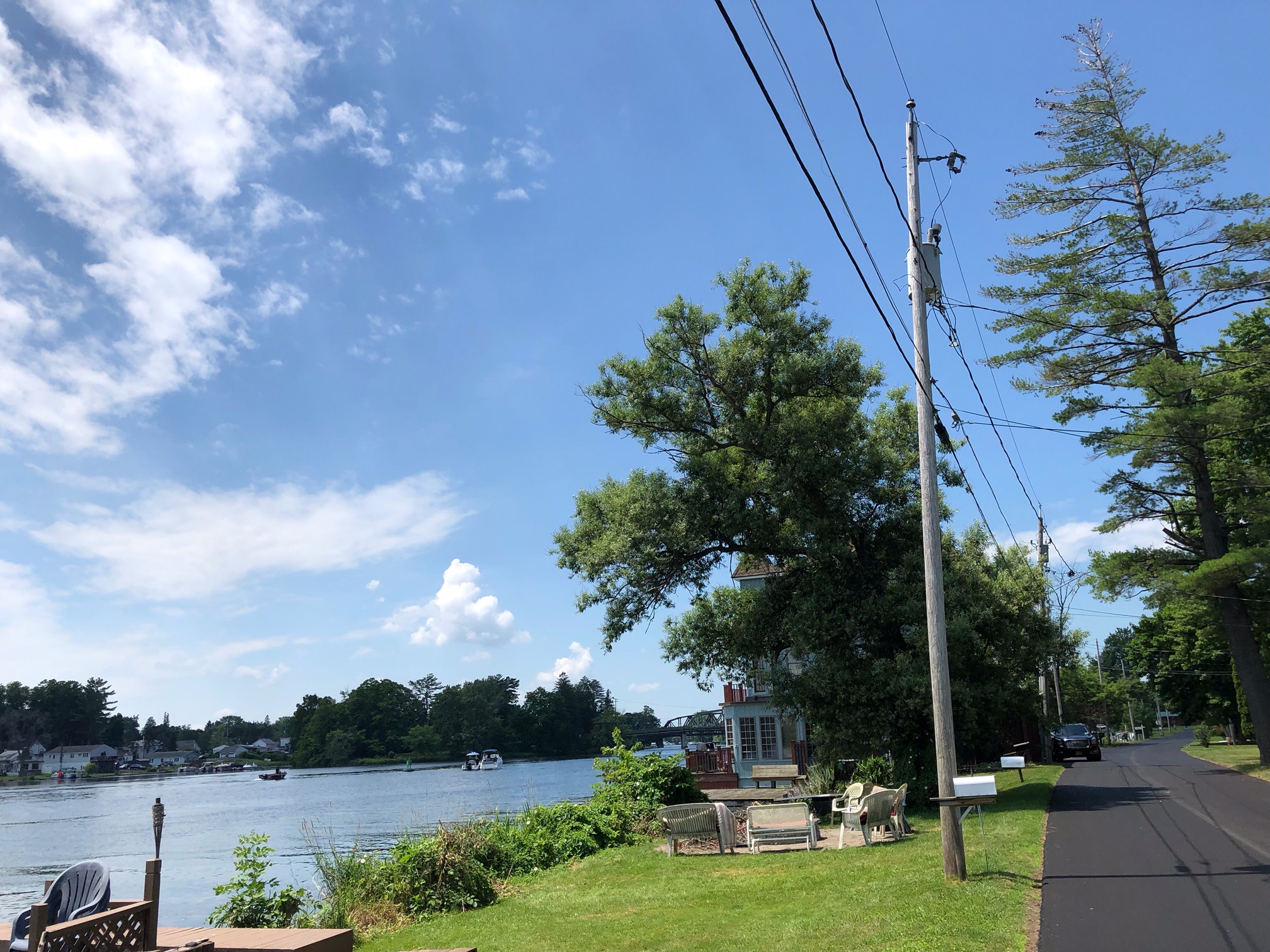 Walking back on our Brewerton waterside street stroll, I knew that house right next to the rolling inlet had a prime spot.