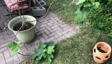 Getting wide. Yes, the fig tree brought to our house by our friend and master figger John made it through another winter inside our house. My dear wife Karen nursed it well in her dressing room. At the start of summer, it’s quite wide in its pot. No signs of figs, though …