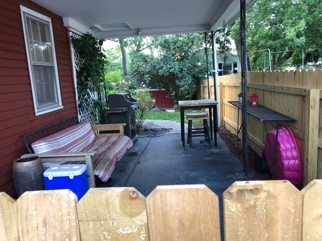 In the summer months, we’ve discovered, it’s perfect for giving our cherished rescue mutt a bath. Easier in and out than the indoor tub, that’s for sure …