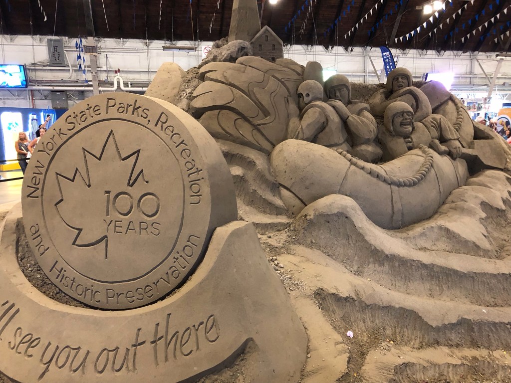 I’ll agree that a century of serving the citizens of my state with great parks and historic preservation is worthy noting with this year’s sand sculpture in the New York State Fair’s Center of Progress.