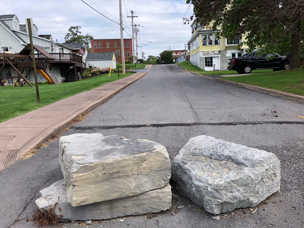 Cars are not allowed to enter Onondaga Lake Park from the Village of Liverpool’s Brow Street. This the big blocks placed in the road makes abundantly clear.