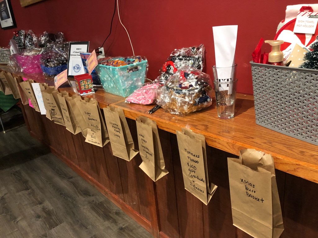 One way to help support the Baldwinsville Riptides baseball program at the pub crawl fundraiser was to purchase tickets for a chance to win the donated prize baskets.