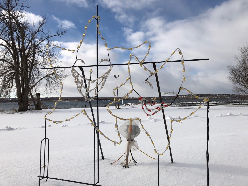 No tears or fears when I conjured up a clown face inside the array of this light display along the trail path at Onondaga Lake Park.