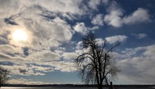 Great sky. What would my big local park offer me in this part of December, wondered after parking in the Village of Liverpool and strolling down toward Onondaga Lake. Yes, a lonely bare tree against the striking water, clouds and sky was a great greeting.