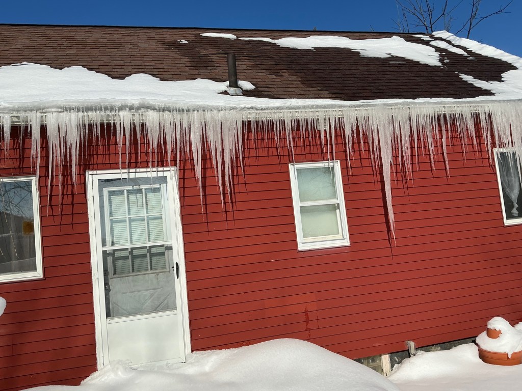 Not only did I see the big pile on our back deck, but a big batch of icicles hanging off the gutters.