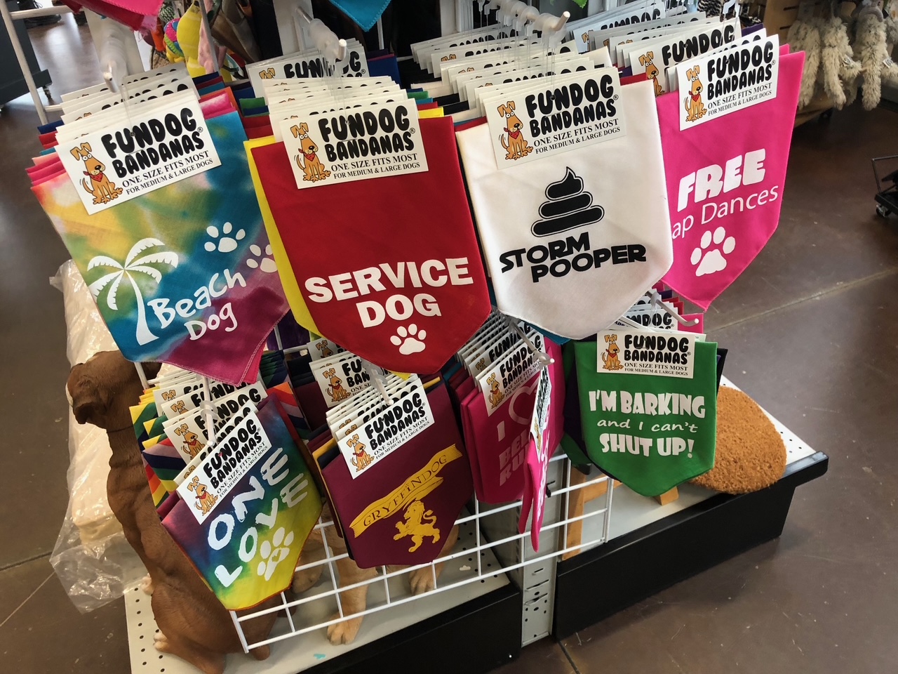 I was a bit jealous of the person who came up with these Fundog Bandanas I spotted at my area big nursery.