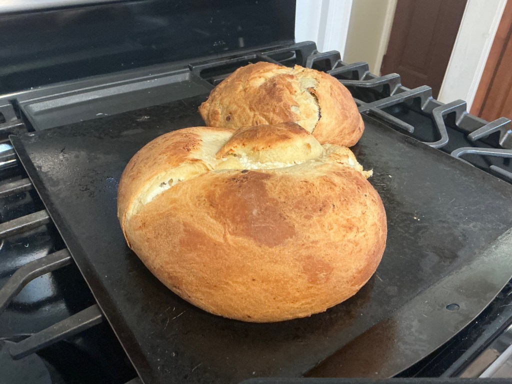 She decided we’d like two varieties. Cheese and chocolate, and the wonderful aromas filled our house.
