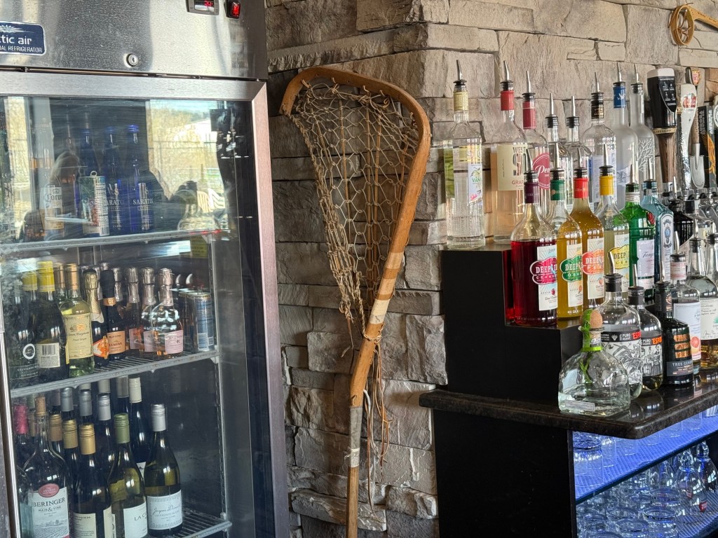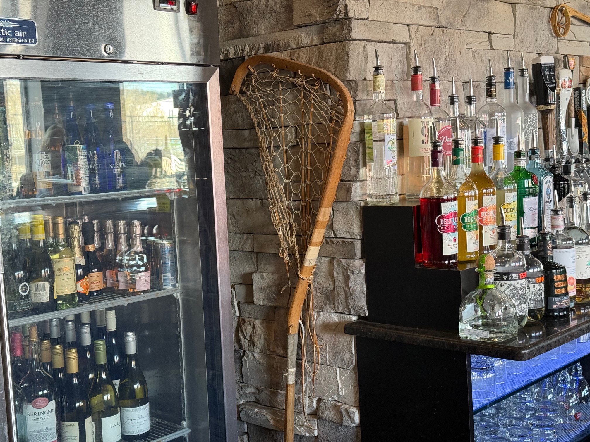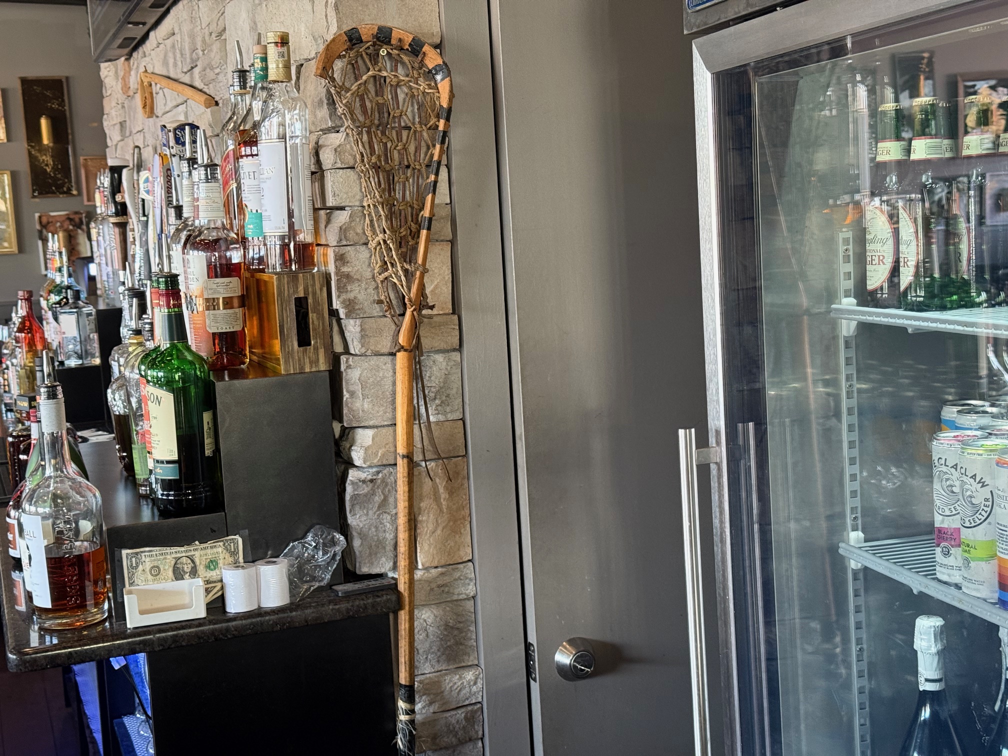 While we chatted at our high top, sipped our drinks and eagerly awaited our food, I spotted a wood lacrosse goalie’s stick behind the bar.