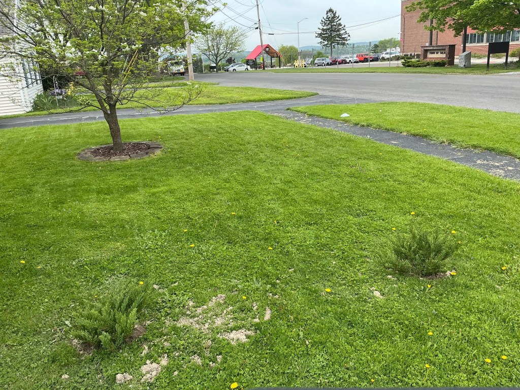 Our walk around the Lowe’s garden department yielded a pair of baby juniper shrubs earmarked for the far edge of our front lawn.