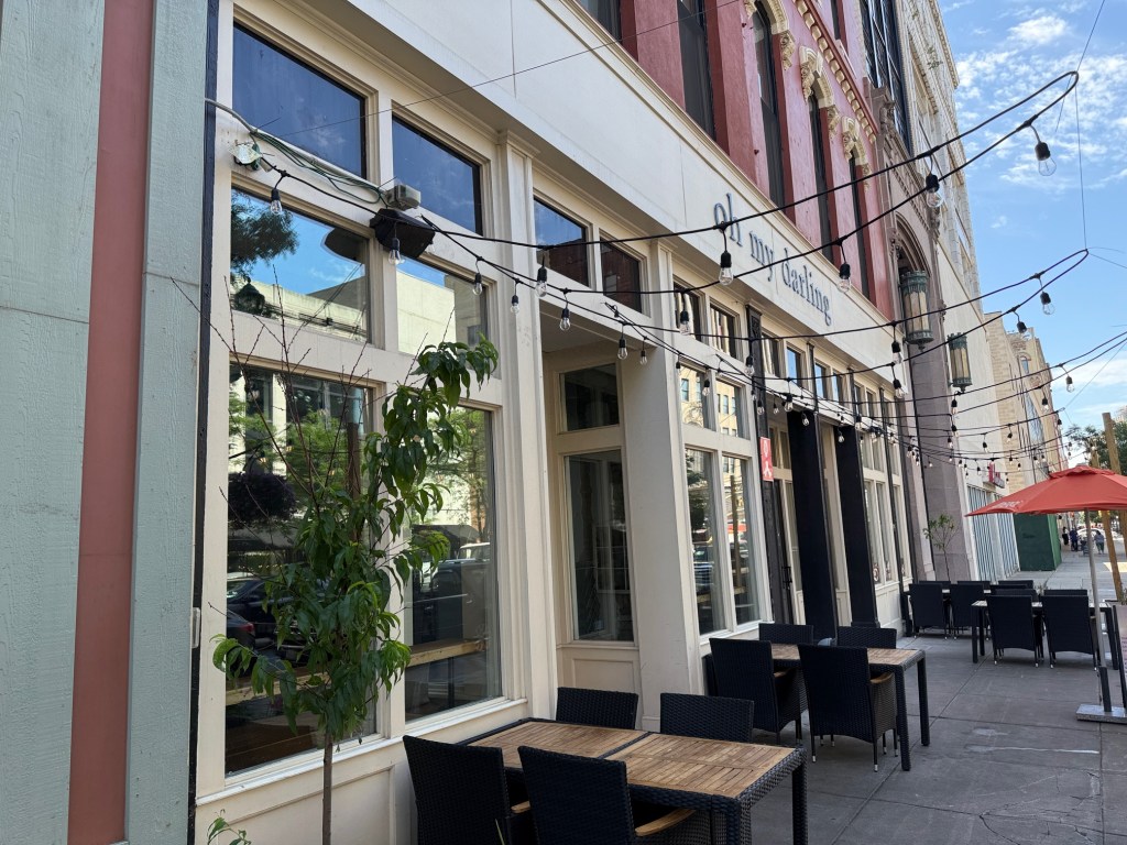 Pretty outdoor opportunity, with strung overhead lights, even, thought I as I approached Oh My Darling in the heart of downtown Syracuse.
