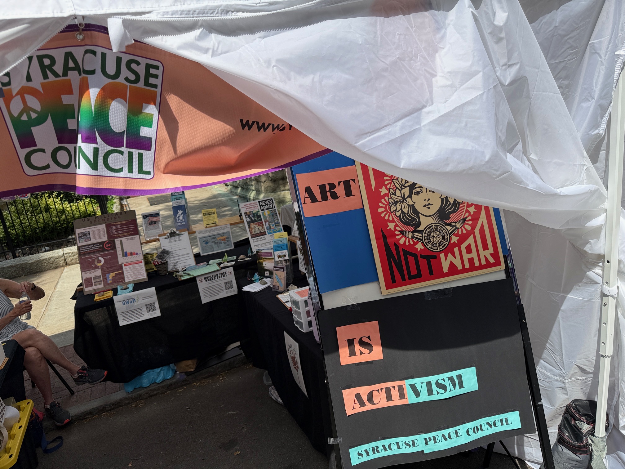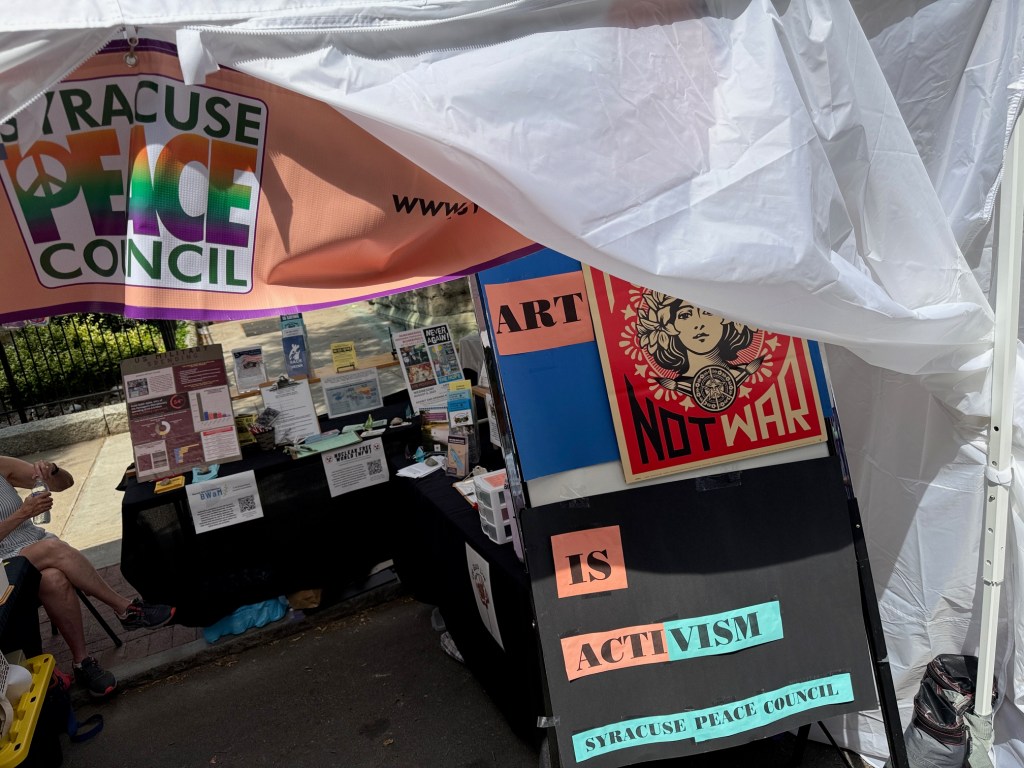 I’ve lived in Syracuse since the 1980s. My stroll through the annual Syracuse Arts and Crafts Festival with my dear wife Karen reminded me that the Syracuse Peace Council has been taking its stand in all the decades I’ve been here.