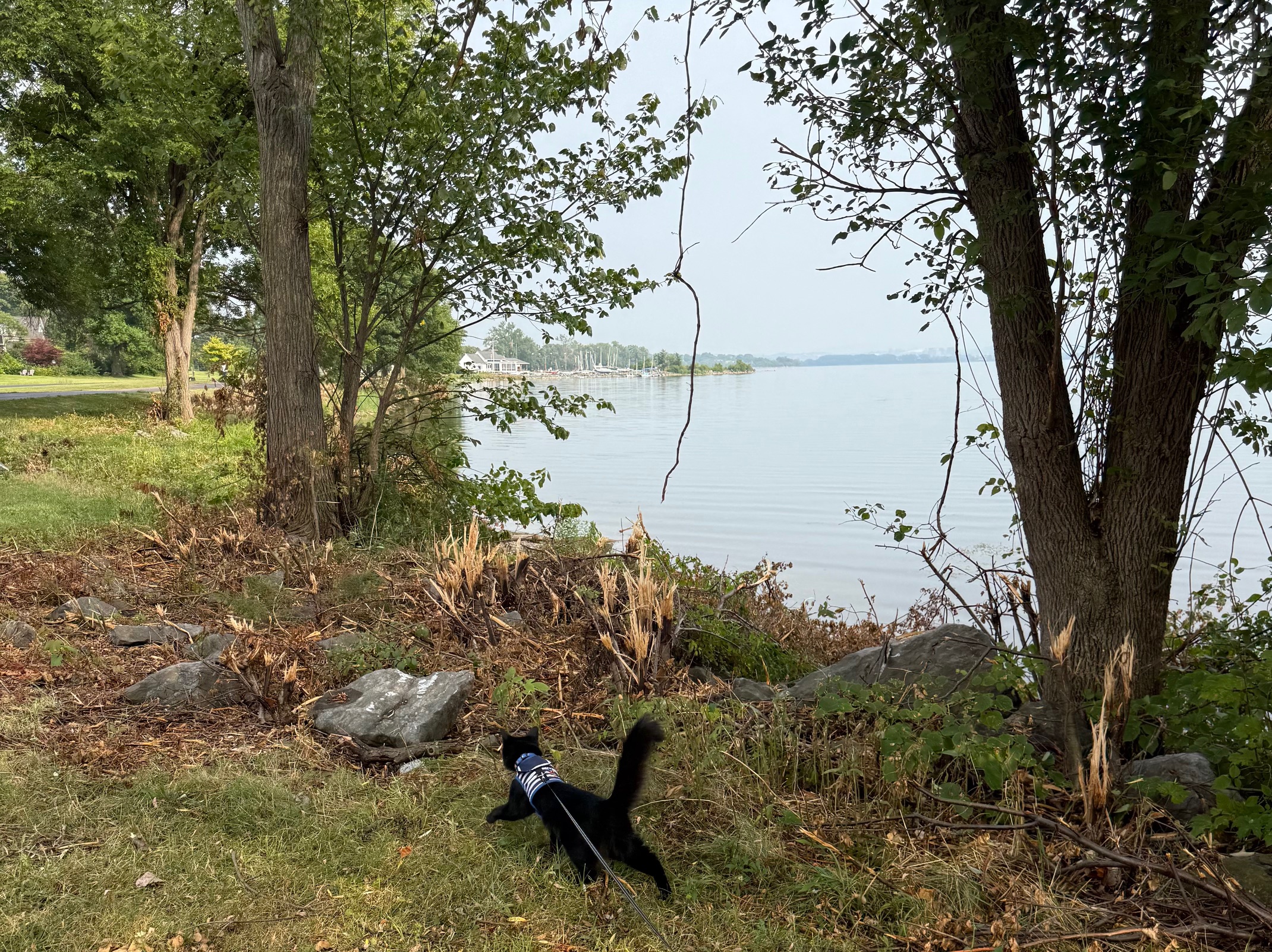 Elisabeth and George now pack up kitty Vinny and cart him the couple miles over to our wonderful Onondaga Lake Park.