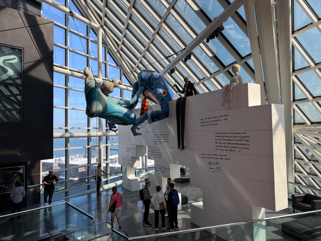 One stairway landing at the Rock&Roll Hall of Fame is given to an intriguing installation commemorating Pink Floyd’s landmark album <em>The Wall>/em>