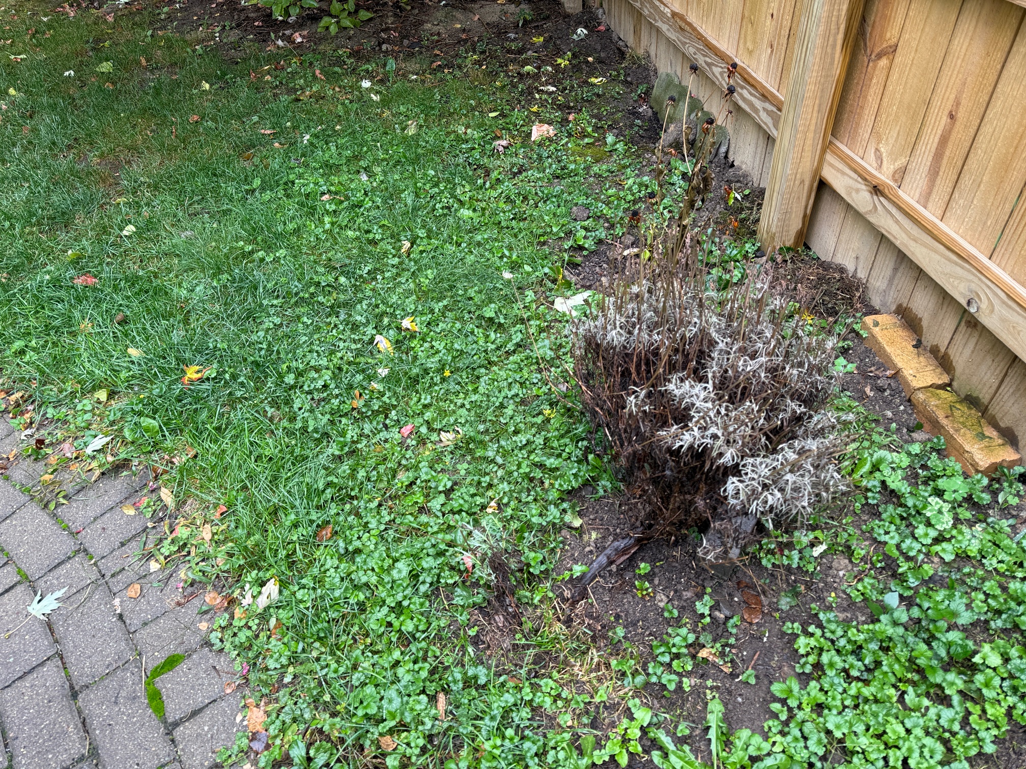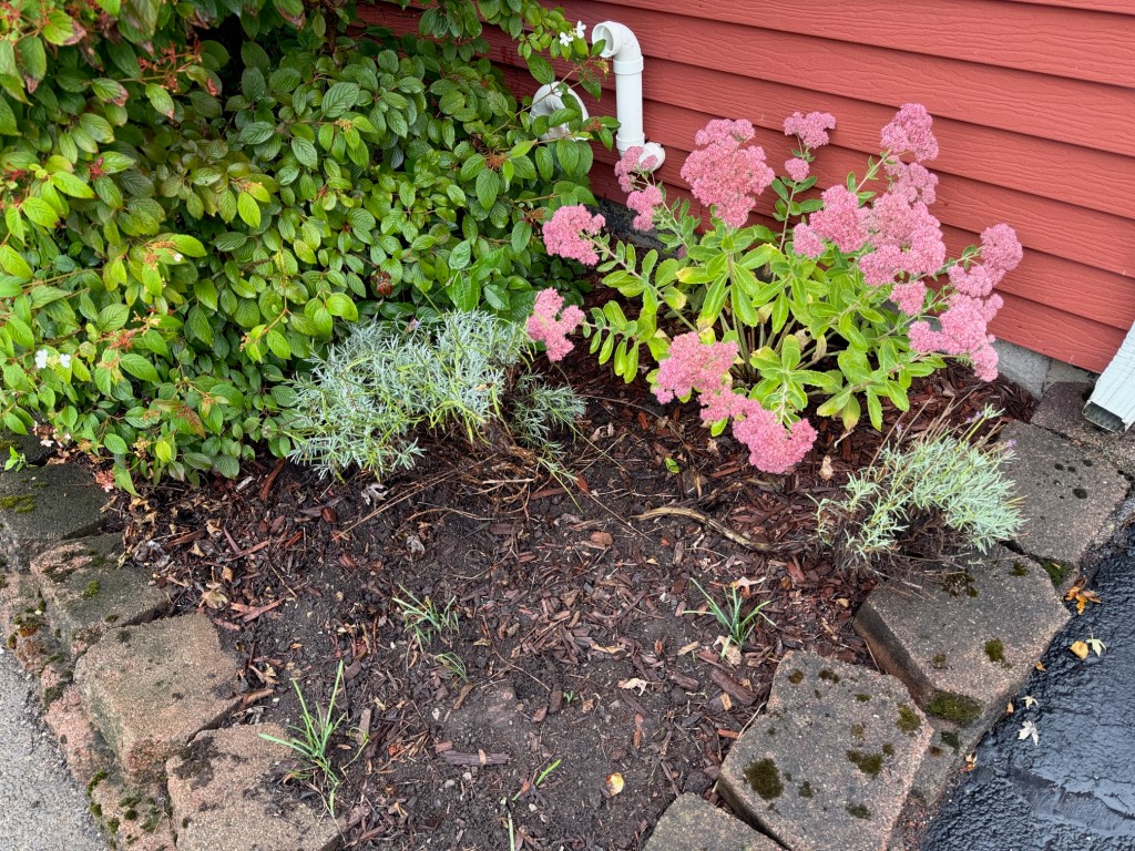 She uncrowded the busy front garden and put one plant each to our new array of bushes by the neighbor’s driveway and by the back fence.