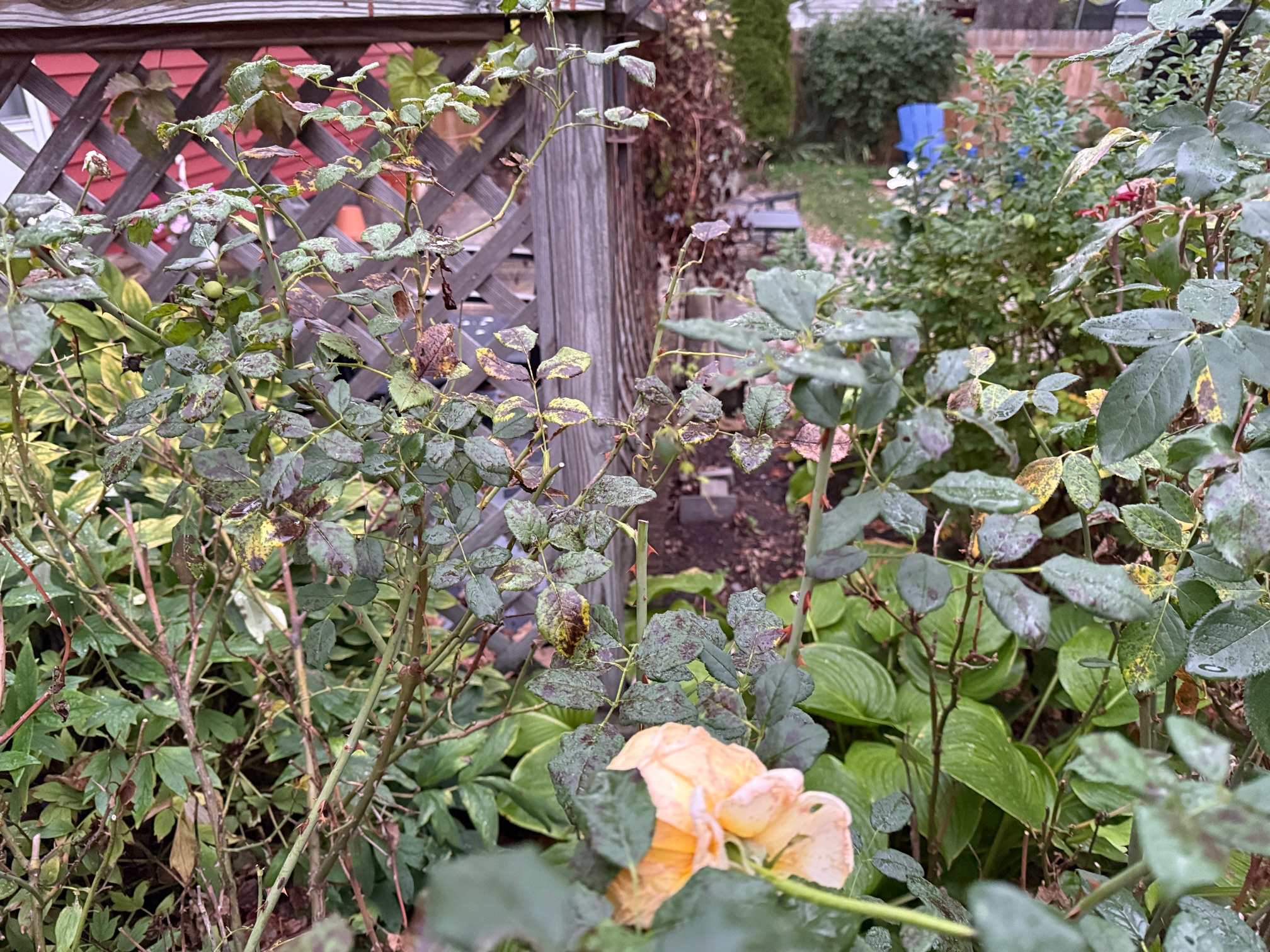 Usually, our backyard roses don’t come out singly. Too many plants, I’ve thought.
