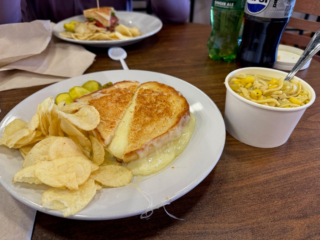 After a wait on line behind a half-dozen or so other hungry parties, I decided on the combo special of grilled cheese and chicken noodle soup.