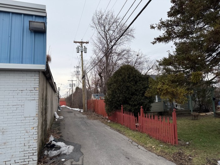 No, I would not want to walk behind the stores in the alley that separated the housing neighborhood and business zoning on this leg of my neighborhood walk.