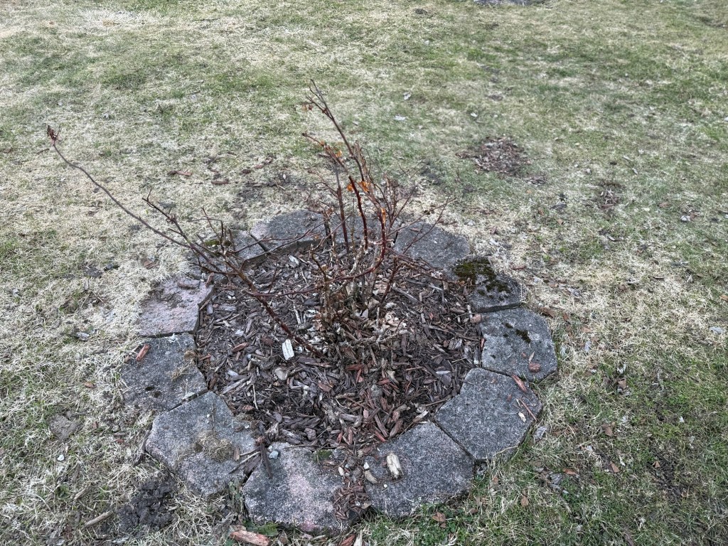 Now that the front yard rose bush is unburied by the big melt, my dear wife Karen and I are hoping for a bounce back.