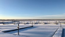 Waiting for warmer time: The iced-over boat berths at our Onondaga Lake Marina seem lined up in perfect winter symmetry.