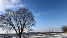 The latest round of flags are up in the Village of Liverpool. I take note as I take a morning break stroll from my job at the library, and I do know the window to the left has held one of the many hairstyling establishments that dot First Street. The red flag at the corner…