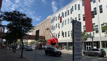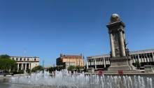 Fountain time. The ice rink gives way to the dancing waters of the fountain in Clinton Square, I realized once again during my recent downtown stroll. No bathers yet, but it will happen …