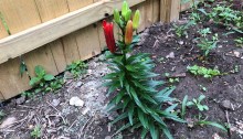 Tall and proud. One daylily came up along our new fence in the backyard. It’s interesting to note how it’s opening in layers. I love the color, too.