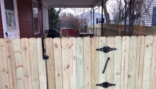 Don’t go there. Our Town of Salina code enforcement officer took a look at our fence gate and set me straight. Because we have a backyard pool, the gate calls for a tall latch with a lock and spring. These ensure best safety practices for short younger ones with younger minds who might wander by…