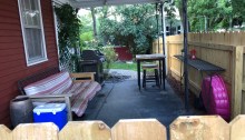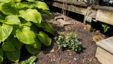 Perfect corner. When lifelong friend Greg came to visit earlier this summer, he graciously gifted us with a rose plant. My dear wife Karen found the perfect corner for it in our backyard garden. Thank you, Greg.