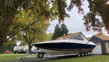 The boat is back near the neighbor’s driveway near a Bitty Better in the Liverpool neighborhood of Galeville. It’s a stretch to fit this baby in the front yard. I’m talking about the boat on the left, naturally. Although the boat on the right would suffice for a trip out on any of the waters…