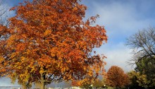 Peeking at the peak. Let’s Go Orange, I thought as I took my Onondaga Lake Park stroll. Yes, it’s seemed that the trees in my part of the world changed colors later than usual. Great contrasts. But the blazing red and orange sure was worth the wait, especially set off against the brilliant blue sky.
