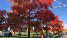 When a line of trees change color at the same rate, it’s like a chorus hitting their notes together perfectly. That’s the thought that struck my during a late October safe walk in the Village of Liverpool, staring down the line flanking Washington Park.