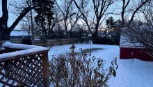 Hello mid-December sunrise. The cherished rescue mutt’s backyard tracks have worked a noticeable groove around the backyard pool cover, I’ve noticed as snow has fallen and wind has gusted day after day. And it’s not yet officially winter …