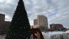 Peaceful. The tree and the Nativity scene look cozy indeed this holiday week in Syracuse’s Clinton Square.