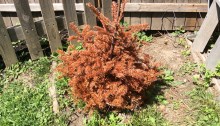 I always show the success of the hard garden work and love from my dear wife Karen and I. Some of you may have noticed a sorry sight in the background of some shots from the backyard of our Syracuse city neighborhood of Eastwood home. The little blue spruce we transplanted after a winter in…