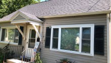 Looking sweet. What happens a couple months short of one year into your first home? For terrific daughter Elisabeth and fantastic fiance George Three, the roof goes. The Roofing Guys came over darn fast and put up the new lid. It looks good. George says he knew it was on the schedule.