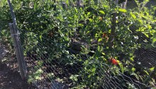 You know I like symmetry. Tomato plants donated by terrific daughter Elisabeth and fantastic fiance George Three successfully transplanted into the neat black pots secured at the nearby Lowe’s, my dear wife Karen and I decided a new backyard alignment with the strawberry pot and fig tree was in order. Long may you grow.