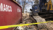 The day after the clatter and shake, the crew is gone, the house is down, the remnants of that burned house remain. They are doing a good job of keeping me away from center zone, at least.