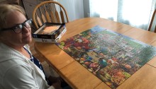 Worth the effort. The puzzle provided by terrific daughter Elisabeth provided dear wife Karen many happy moments of making these past few months. You OK up there, I’d aim up the stairs as she worked at her arts/crafts table. Complicated, yes. Beautiful, definitely.