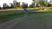 Two threesomes completed all nine holes in our little golf league that could Wednesday night. DJ, Amy and I got around first. The final foursome from the league in front of us made us wait, just a little, on a couple of tee shots. I think my iPhone 6 caught Amy’s shot in the greenside…