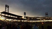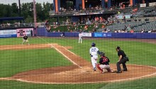 Brett Baty, still working on that swing. While baseball rests for the All-Star break, I’ll pull out two photos stockpiled from our latest visit for a Syracuse Mets game at NBT Bank Stadium. Night game! As my dear wife Karen, terrific daughter Elisabeth and wonderful George Three enjoyed ourselves in our great seats, I declared…