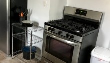 One thing we did not like about the kitchen when moved into A Bitty Better in the Liverpool neighborhood of Galeville in 2016 was the stove. We were spoiled by the one we’d hand-picked when we renovated the kitchen of The Little Bitty in the Syracuse neighborhood of Eastwood. We lived with the four-burner model…