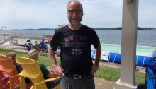 Wearing it proudly. Our visit to the Thousand Islands village of Clayton was the perfect opportunity for me to show off my Father’s Day gift from terrific daughter Elisabeth. She knew I’ve been admiring the design and colors of the New York Mets’ version of Major League Baseball’s City Connect uniform series. I wore it…