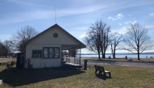 Ready and waiting. The picnic table and benches are set up for lunchtime visitors outside the Onondaga Lake Marina, but, during my stroll, no takers. The shade looks perfect, too.